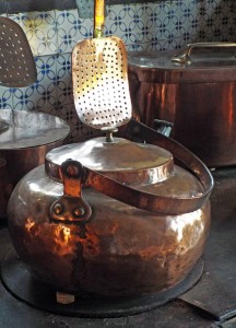 Une bouilloire à forte capacité sur le fourneau de la cuisine de montpoupon