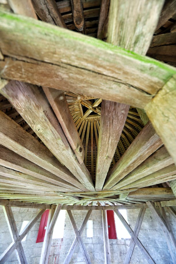 La tour était découverte à l’origine ; c’est la famille de Prie qui décide d’y ajouter un toit au XVIe siècle. La charpente en chêne à double enrayure est donc posée sur le haut de la tour à cette époque, et des fenêtres sont percées entre les meurtrières.