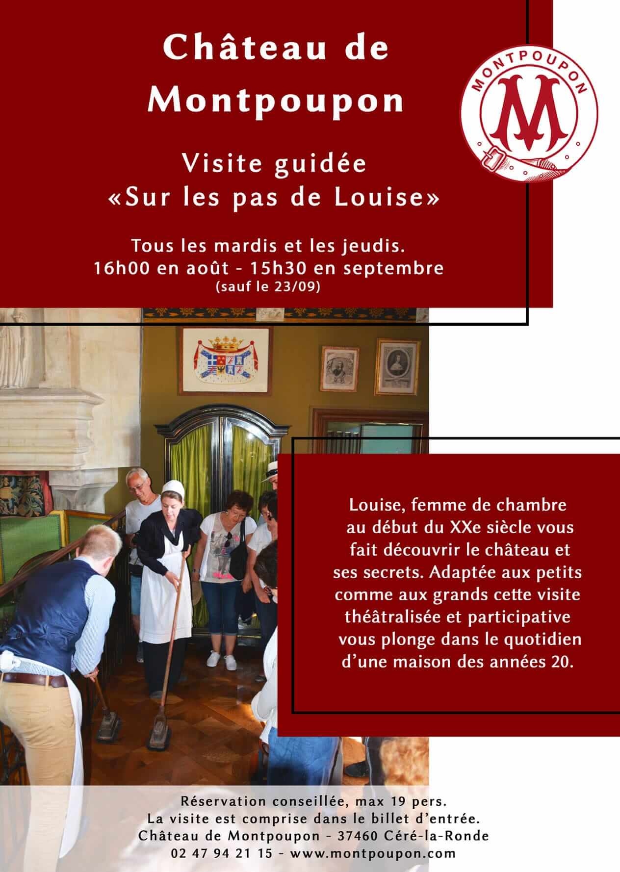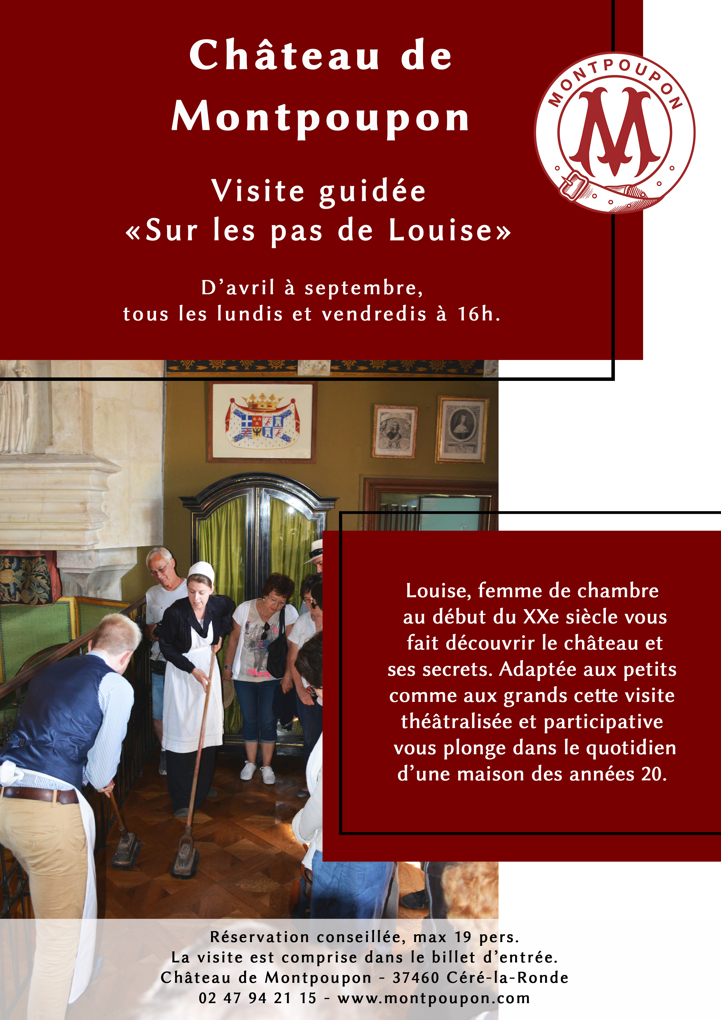Louise, femme de chambre de Madame au début du XXe siècle, vous fera découvrir le Château de Montpoupon et ses secrets, le temps d’une visite pas comme les autres.